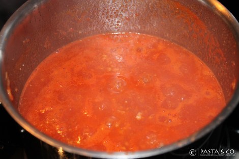 8) After 1 and 1/2 hour, the ingredients will be cooked together and they’ll also reduce slightly. You’ll get a lovely thick rich meaty tomato sauce. Spice it with a pinch of nutmeg.