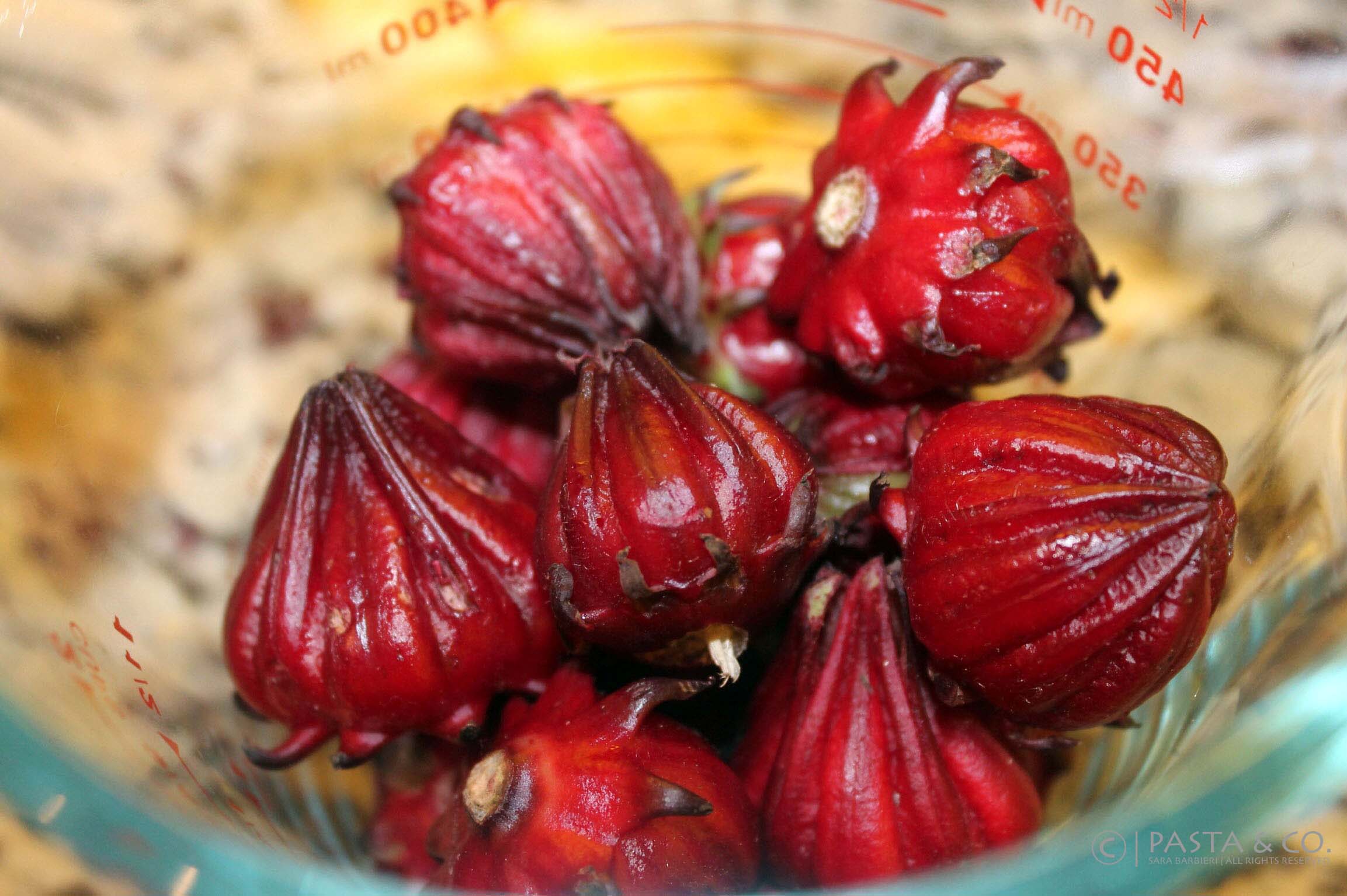 My farmer put into our weekly basket a bunch of these red things I wasn’t sure about. I tried to eat every part of it and then read it was Sorrel, Jamaica Flowers. I had tried Agua Fresca at Cuchara on Fairview and I loved it, but Agua Fresca is made with hibiscus flowers. I am still not sure that Jamaica and Hibiscus are the same thing. Well, I’ve looked around blogs and different recipes, I tried, and it turned out a refreshing drink that I read it’s full of antioxidants and actually good for you. Mexicans! If you read this post and have comments, please feel free to make suggestions!! :D